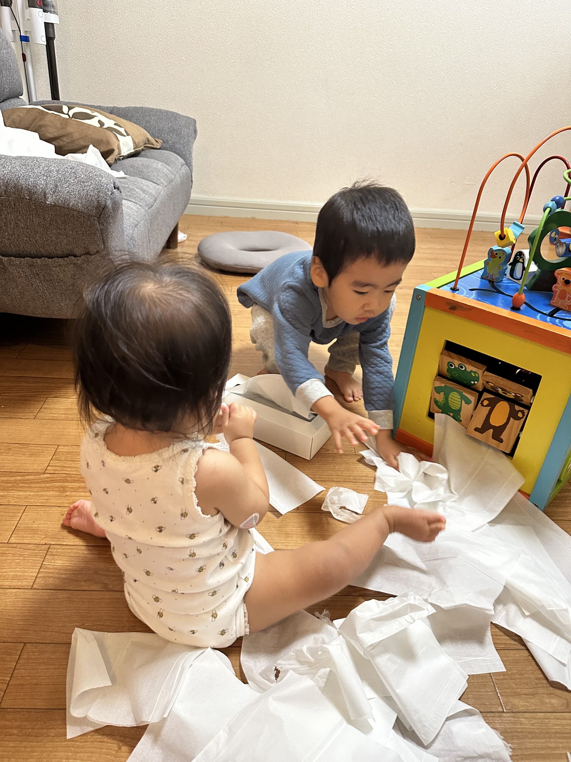 「あー、やられてしまった、、、でも、もういいやー」と正直、「なぜ、この前させたんだ」とティッシュパーティを教えたパパを恨んだ。一方で、「もうしていいものと教えてしまったなら好きにさせよう」という諦めも。