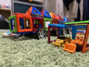 大人目線だと小さいおもちゃも、横から見ると高さがあるように見えるから、おもちゃが少し大きく感じる。