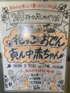 赤ちゃんを抱っこしたい人 赤ちゃんを抱っこしてもらいたい人 に、これからも声かけ続け、毎月の折々おしゃべり会をみんなが楽しめる和める場にしていきたいと思います。