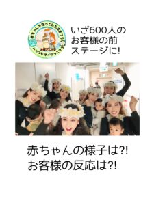 舞台裏の袖で円陣を組む時には、赤ちゃんも泣き止み、さすが0歳のパフォーマーたち。