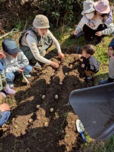 次女は植物よりも、水遊び泥遊びに夢中。
