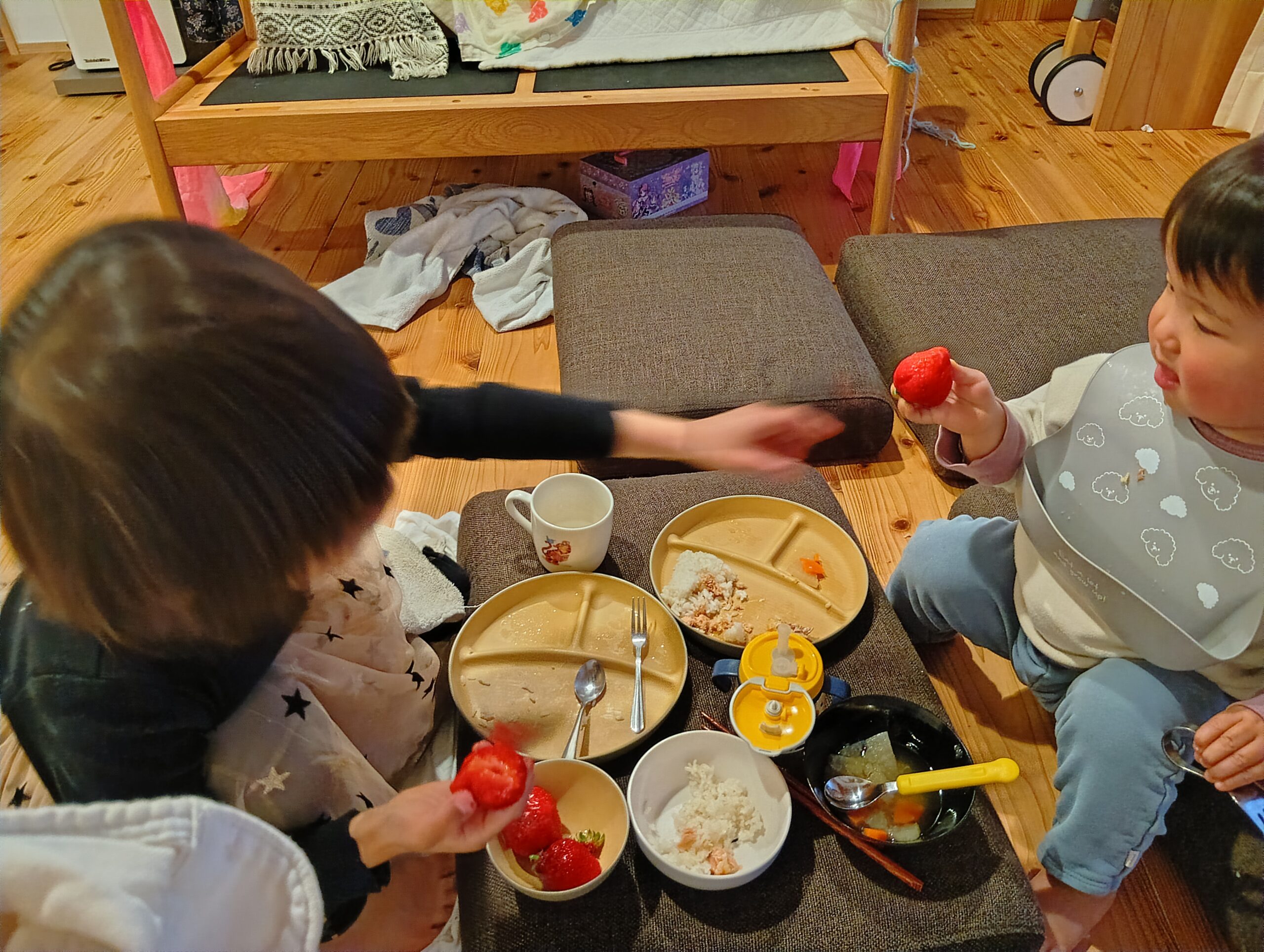 ※アイキャッチは、息子はRSでも元気、娘はさらに元気な中、夫は寝込むという夜。絶賛ワンオペで疲れ切った私のカオスな夕ご飯風景です。