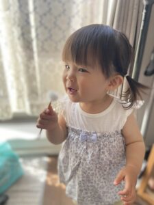 2、3か月前には靴を履いて歩くのがやっとだった娘が、最近では自分でたんぽぽの綿毛を見つけて、自分で詰んでフーッと吹けるようにもなった。