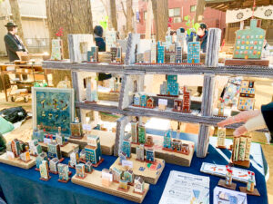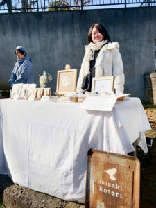 この日の境内も、木漏れ日を浴びながら、個性豊かなブースが所狭しと並んでいました。廃材の物語を積み上げた小さなタワーや灯台のオブジェを創り出す「イーモンデザイン」さん、そして「misaki kotori」さんの繊細な作品の数々。どれもが、大量生産の品々にはない確かな体温をまとっています。