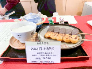境内の茶屋でいただく「おせんだんご」は、鬼子母神の千人の子どもにちなんで名付けられた伝統の味です。店内に鎮座し、穏やかに笑みをたたえる大黒天様を眺めながら、香ばしい団子を頬張るひとときは、日常の慌ただしさを忘れさせてくれます。