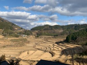 岡山県美咲町。明治の村合併で「角石」と「祖母」の名を合わせて誕生した全国的に珍しい「祖母」の字を持つ地名。一帯には棚田の風景が広がっている。